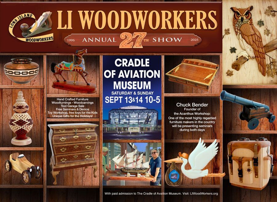 Long Island's finest artisans will be on hand at the annual Woodworking Show, which will feature handcrafted furniture, wood turnings, scroll saw work, and carvings. There will also be live demonstrations, seminars, free handmade toys for the kids in the toy workshop, a gift shop, a tool garage sale, and other vendors.